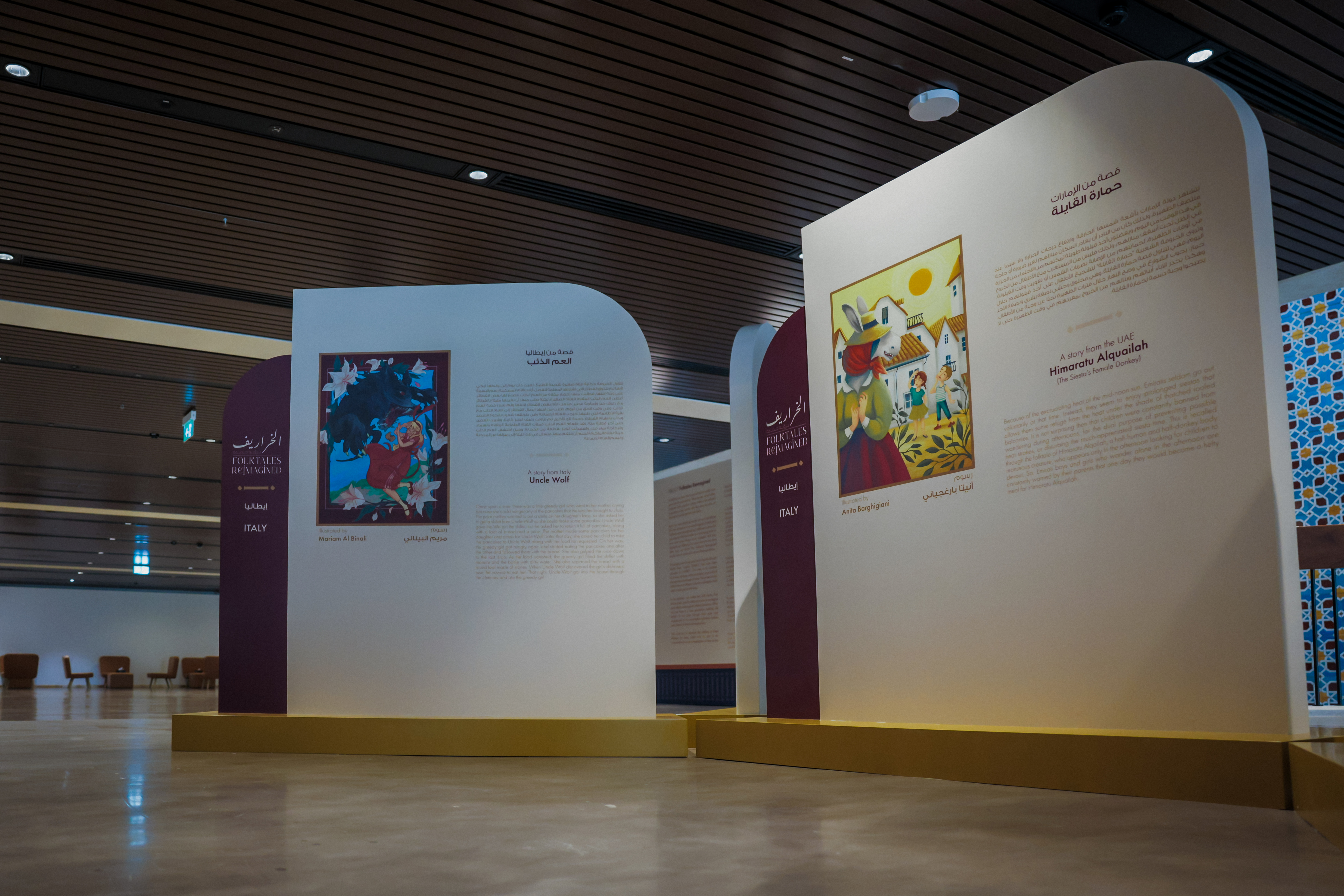Folktales Reimagined at Abu Dhabi, UAE (2023): The exhibition took residence at the Abu Dhabi Cultural Foundation in 2023. It featured the participation of ten Emirati artists, along with the illustrative creations of five Italian and five Mexican artists. Together, they imaginatively interpreted and breathed life into the most renowned folktales from these three distinct cultures.